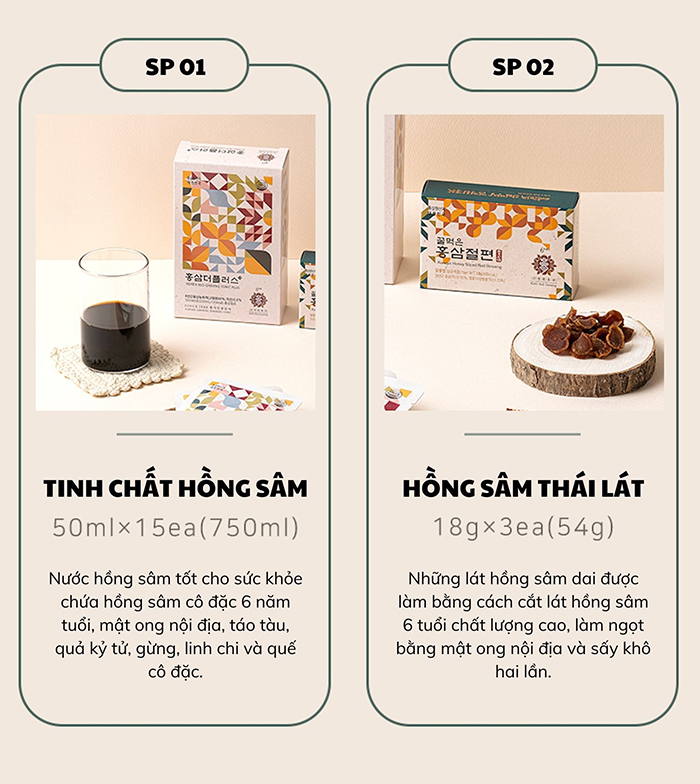 – Chiết xuất từ hồng sâm 6 năm tuổi của bậc thầy nhân sâm Kim Jeong Hwan, hàm lượng trên 60% (Tổng Rg1+Rb1+Rg3, 6mg) – Tỉ lệ chiết xuất hoàn hảo: Phần thân (70%) và phần rễ (30%)