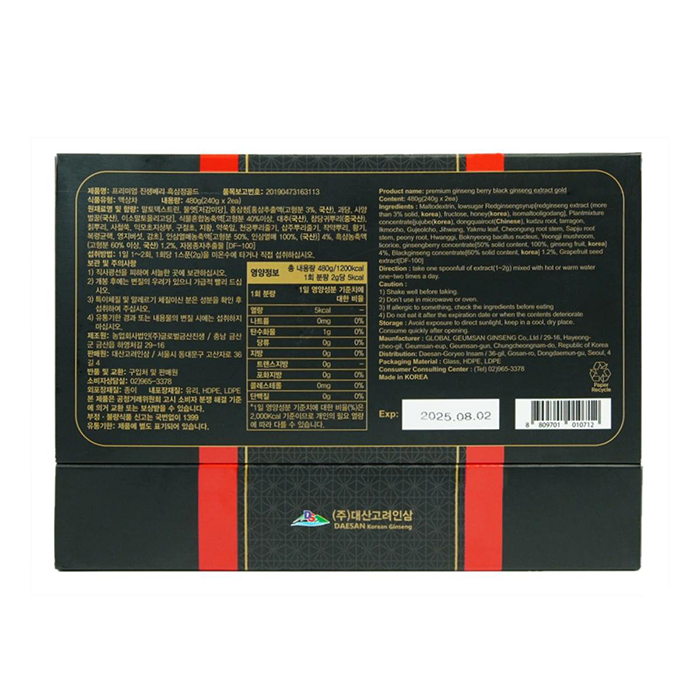 Nhân Sâm Đen Premium Ginseng Berry Black Ginseng Extract Gold 240g x 2 Lọ