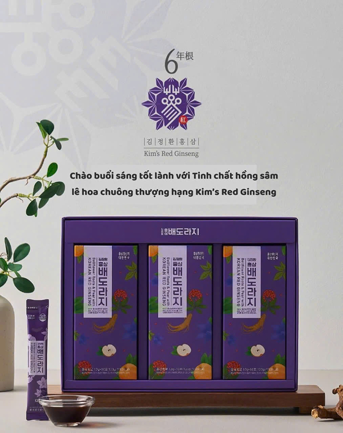 Nước Hồng Sâm Lê Hoa Chuông - Bellflower Roots & Pear with Korean Red Ginseng 12g x 30 Gói